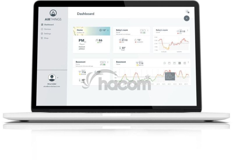 Dáta sú dostupné prostredníctvom bezplatnej aplikácie Airthings Wave (iOS/Android) a tiež online pomocou Airthings Dashboard s pokročilejšími analytickými možnosťami.