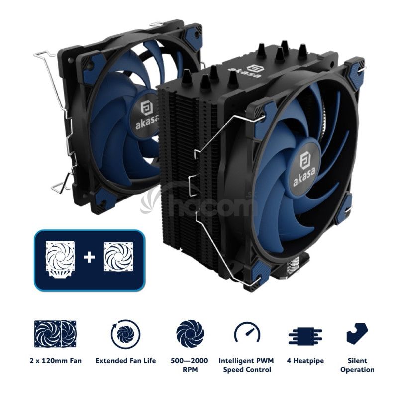 Akasa Alucia BundleBundle Tower chladiča CPU s dvoma ventilátormi Akasa ALUCIA H4 Plus Premium