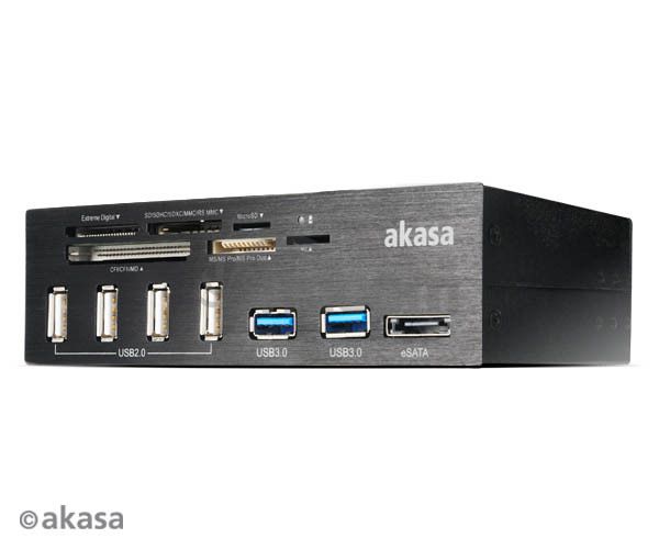 Výhodná poloha v prednej časti počítača, šesť slotov, akceptuje väčšinu dostupných kariet a to na jednom mieste. Obsahuje dva USB porty naviac a eSATA port pre pripojenie. Jednoduchá inštalácia.* Panel z brúseného hliníka