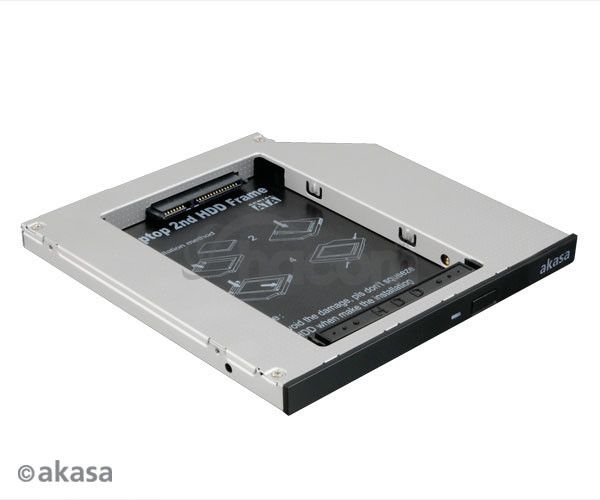 Akasa adapter pre 2.5 "SATA HDD / SSD do SATA v notebooku (namiesto CD / DVD mechaniky)Vhodné pre 2,5 "SATA HDD / SSD