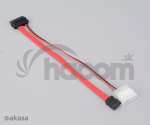 Praktická interné redukcia z Mini SATA na SATA vrátane napájania. Vhodné pre Slimline SATA DVD, Blu-Ray mechaniky a 1,8 "SATA a SSD disky. Prevádza klasický 7-mi pinový SATA konektor a 4-pinový Molex do jedného konektora. Kábel je 20 cm dlhý a je ideálny pre použitie v mini- ITX skriniach.konektory: