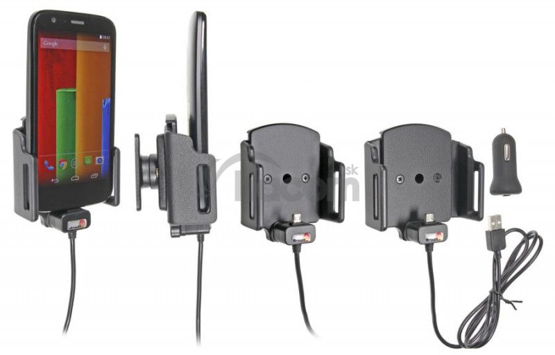 Nastaviteľný držiak na mobilný telefón s konektorom microUSB v osi telefónu a napájaním z cigaretového zapaľovač (CL 12V) alebo z USB je určený pre telefón s puzdrom aj bez puzdra.Držiak je veľmi pevný, telefón sa v ňom neklope a nevibruje. Držiak má kĺb, vďaka ktorému môže byť mobilný telefón kedykoľvek jednoducho natočený na šírku alebo na výšku alebo naklopený. Držiak sa upevňuje na Brodit ProClip.