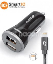 ALIGATOR 3.4A, 2xUSB, smart IC, čierna, USB kábel pre iPhone / iPad CHS0007
