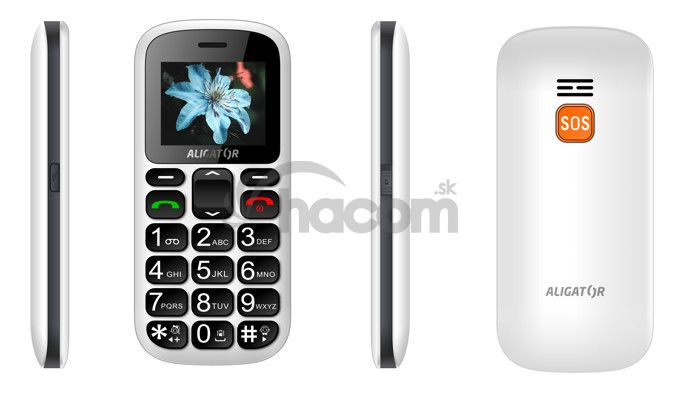 Klasický telefón pre seniorov s SOS tlačidlom, možnosťou obrázkového tel. Zoznamu a funkciou určenie polohy SOS locator,s podporou dvoch SIM kariet. V dvoch farbách, čierno-šedá a bielo sivá. Stojan je súčasťou balenia.