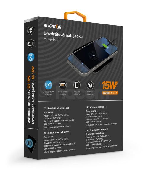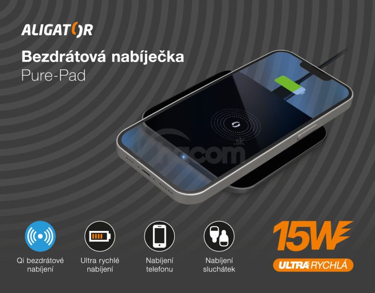 Technológia Qi používa na prenos elektrickej energie elektromagnetické pole s adaptívnym riadením výkonu. Vďaka tomu je možné bezpečne a ľahko nabíjať telefón alebo slúchadlá. Aligator Pure-Pad umožňuje bezdrôtovo nabíjať moderné telefóny výkonom až 15W, čo je 6x viac ako pri základnej USB nabíjačke!