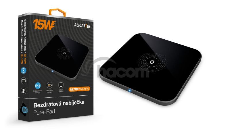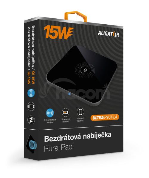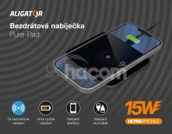 - ALIGATOR bezdrôtová nabíjačka Aligator Pure-Pad 15W, čierna CHQ004