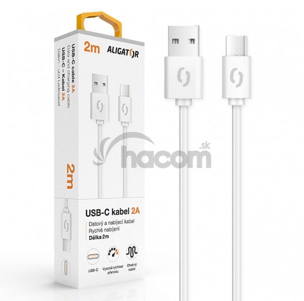 - ALIGATOR Dátový kabe 2A USB-C 2m, biely DAKA012