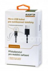 Dátový a nabíjací Micro-USB kábel s predĺženým konektorom pre outdoorové telefóny ALIGATOR:Kábel sa vyznačuje extra dlhým microUSB konektorom pre nabíjanie a synchronizáciou dát.