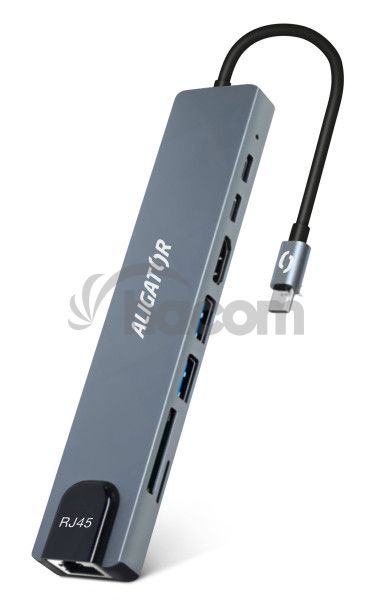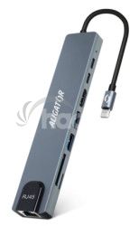 Aligator Dokovacia stanica USB-C/Hub 8v1 (USB-C/2xUSB/SD/MicroSD/HDTV/RJ45) AHUB001