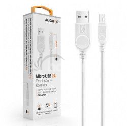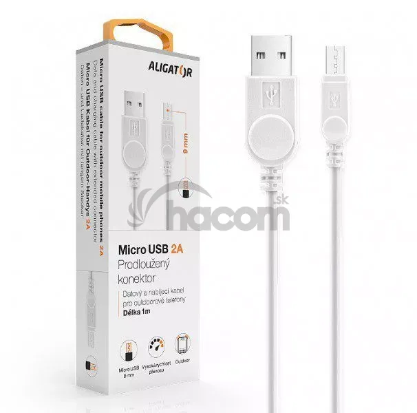 Aligator kábel microUSB predĺžený kon. 9mm Biely DAKAMUOUTWT