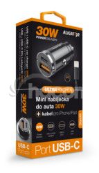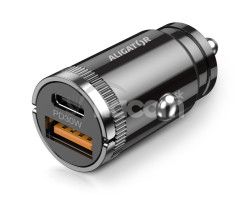 Výkonná a SMARTMúdra Mini nabíjačka do auta ALIGATOR Power Delivery 30W, USB-C + USB-A, USB-C kábel pre iPhone / iPad