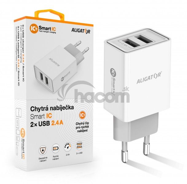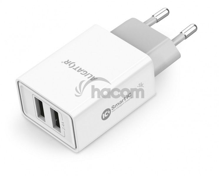- ALIGATOR Múdra sieťová nabíjačka 2,4A, 2xUSB, smart IC, biela CHA0030