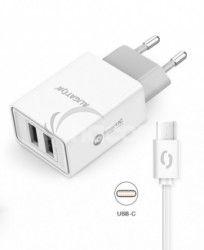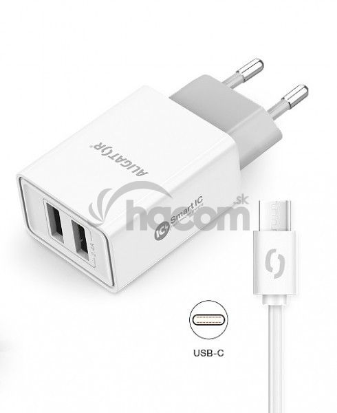 - ALIGATOR Múdra sieťová nabíjačka 2,4A, 2xUSB, smart IC, biela, USB-C kábel CHA0034