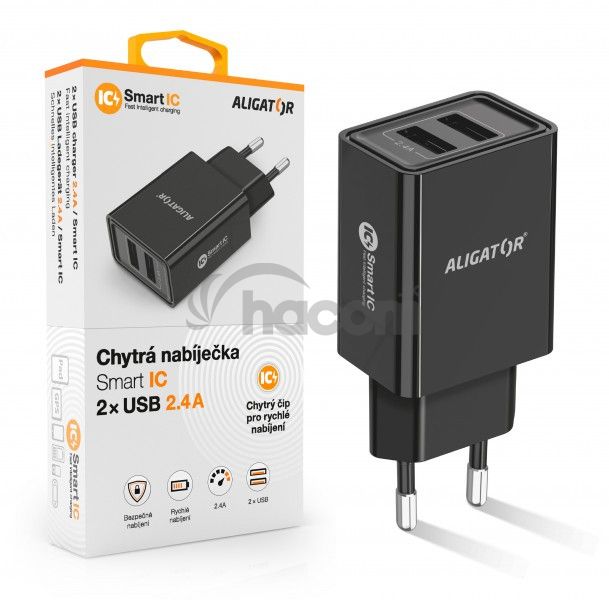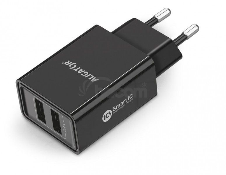 - ALIGATOR Múdra sieťová nabíjačka 2,4A, 2xUSB, smart IC, čierna CHA0029