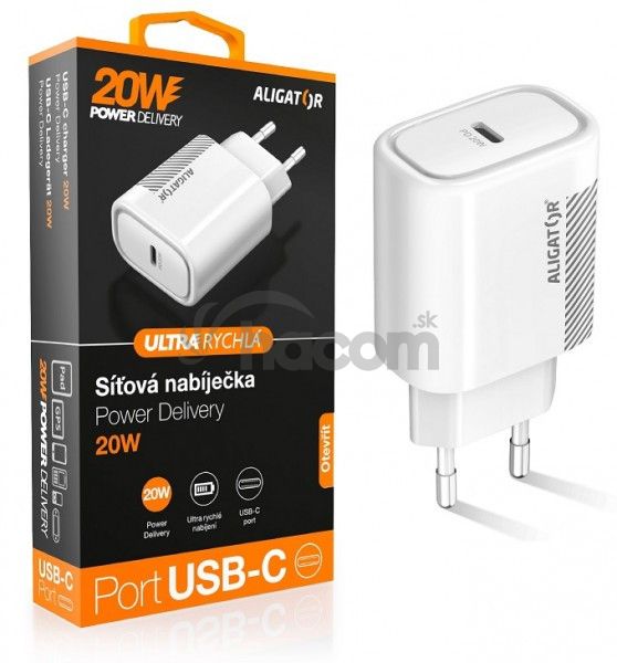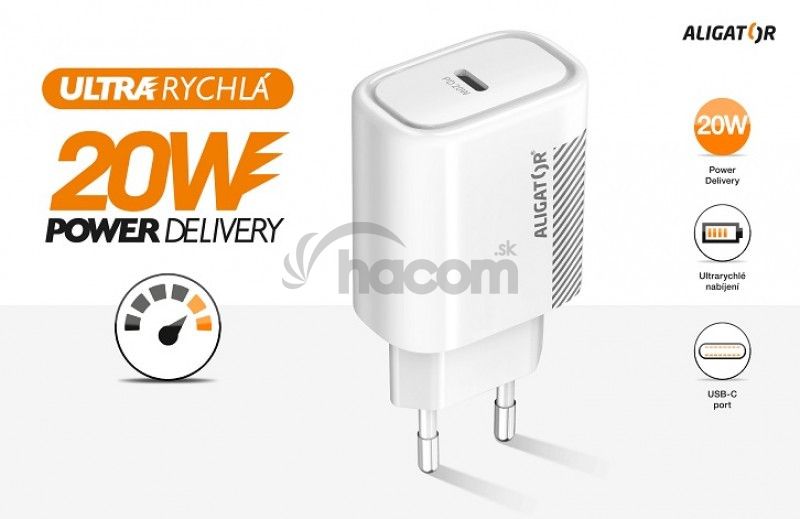- Aligator POWER DELIVERY 20W, USB-C, biela CHPD0001