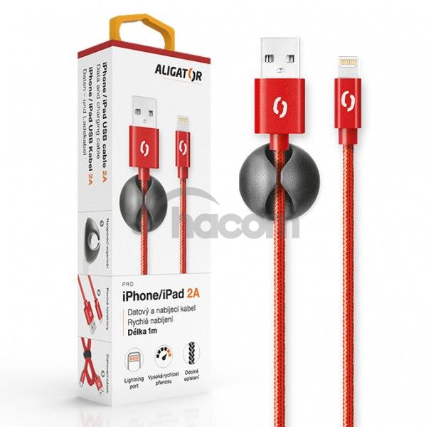 ALIGATOR PREMIUM Dátový kábel 2A, Lightning červený DATKP11