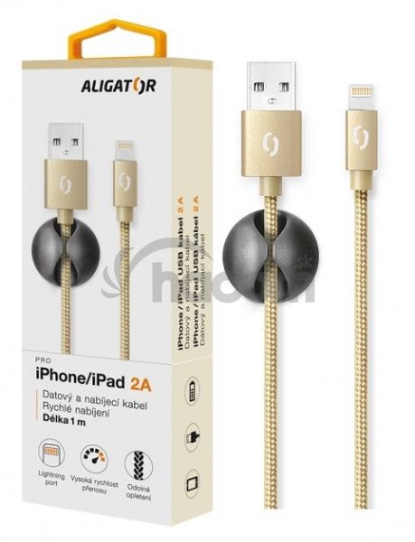 - ALIGATOR PREMIUM Dátový kábel 2A, Lightning zlatý DATKP06