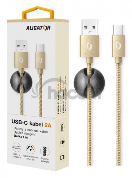 - ALIGATOR PREMIUM Dátový kábel 2A, USB-C zlatý DATKP09