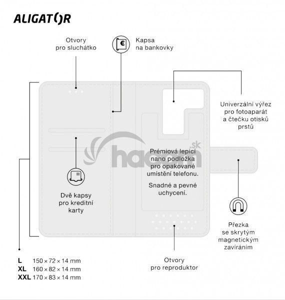 Pre maximálnu ochranu Vášho mobilného telefónu doporučujeme používať toto puzdro v kombinácii s radom kvalitných univerzálnych tvrdených skiel ALIGATOR GLASS.