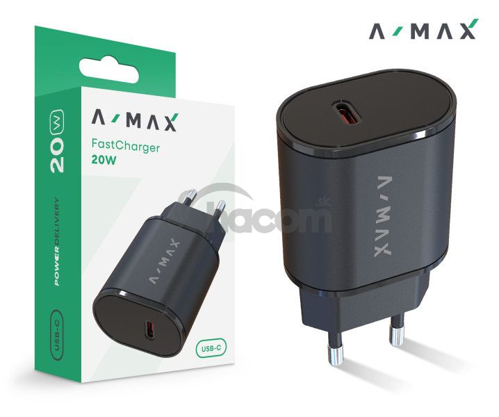 - Aligator sieťová nabíjačka A-MAX PD 20W USB-C čierna AX0002