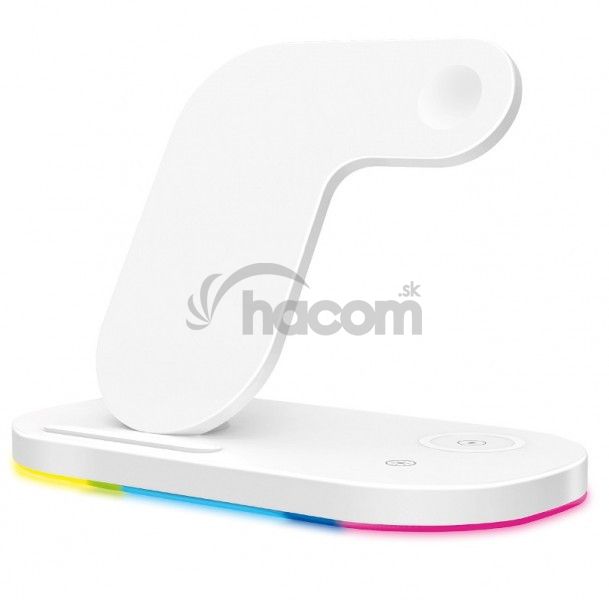 Bezdrôtová stanica s podporou rýchleho bezdrôtového nabíjania s výkonom 15W. Hravo a bezdrôtovo nabije Váš mobilný telefón, TWS slúchadlá a hodinky Apple Watch – a to všetko naraz!