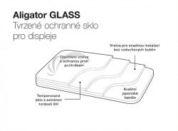 Ochranné sklá Aligator Glass sa vďaka svojej konštrukcii, kvalitným lepidlám a unikátnej technológii dobre lepia, nezanechávajú bublinky a je možné ich opätovne sňať a znovu použiť. Pre pohodlnú montáž je balenie doplnené čistiacou a leštiacou utierkou a jednoduchým návodom, podľa ktorého zvládne montáž skla každý.