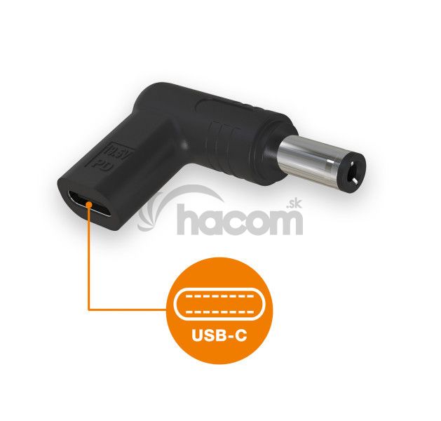 USB-C napájacia redukcia 5,5 x 2,1 mm pre notebooky Acer/Compaq/HP/Fujitsu/ToshibaUSB-C napájacia redukcia 5,5 x 2,1 mm pre notebooky Acer, Compaq, HP, Fujitsu a Toshiba radu ALIGATOR POWER.