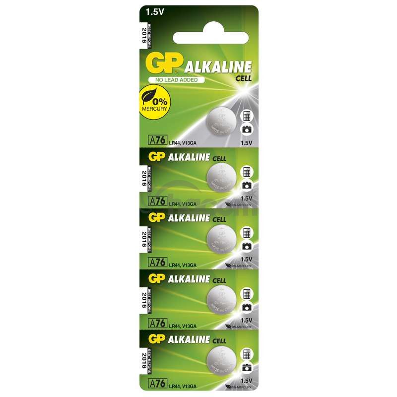 Alkalická gombíková batéria GP LR44 (A76F), 5 ks