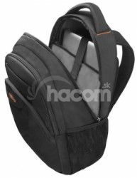 batoh je rozdelený do dvoch častí - v jednej je priestor pre tablet + organizér, v druhej polstrovaná priehradka na notebook + voľný priestor