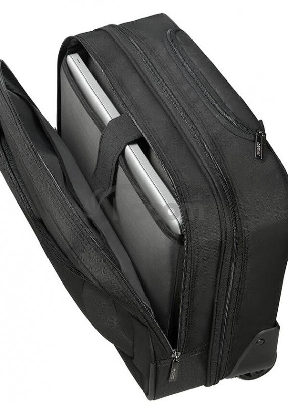 Taška na kolieskach AMERICAN Tourister ROLLING TOTE 15, 6 '' z kolekcie AT WORK má z prednej strany tri samostatné vrecká na zips. V tej najväčšej je polstrovaná priehradka na tablet + menší organizér. Hlavný priestor je rozdelený do dvoch samostatných častí. V jednej je polstrovaná priehradka na notebook + priehradka napr. Na dokumenty. V druhej časti sú krížové upínacie pásy pre dobrú fixáciu odevov.Materiál: polyester
