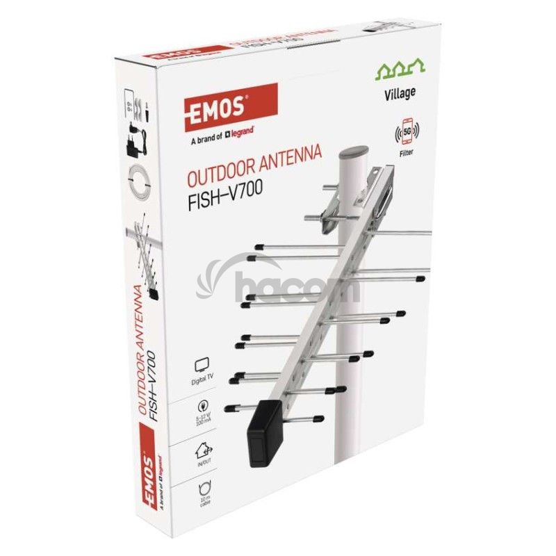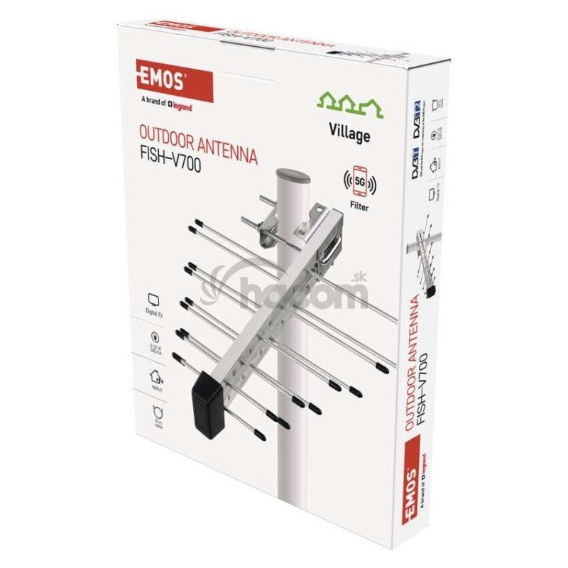 - Anténa univerzálna VILLAGE FISH–V700, DVB-T2, filter LTE/4G/5G J0806