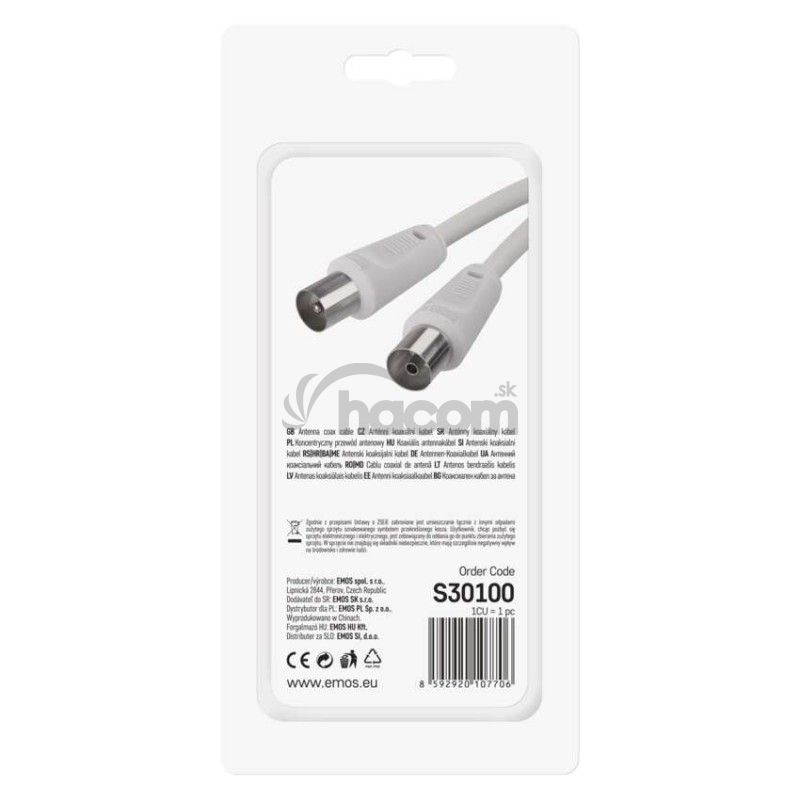 - Anténny koaxiálny kábel tienený 1,25m – rovná vidlica S30100