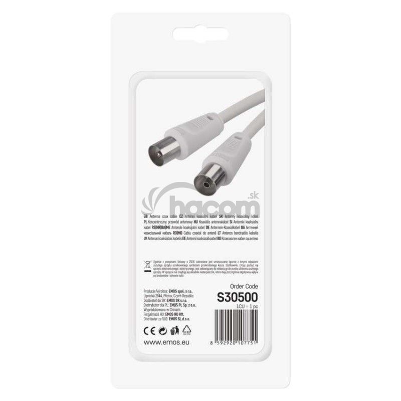 Anténny koaxiálny kábel tienený 5m – rovná vidlica S30500