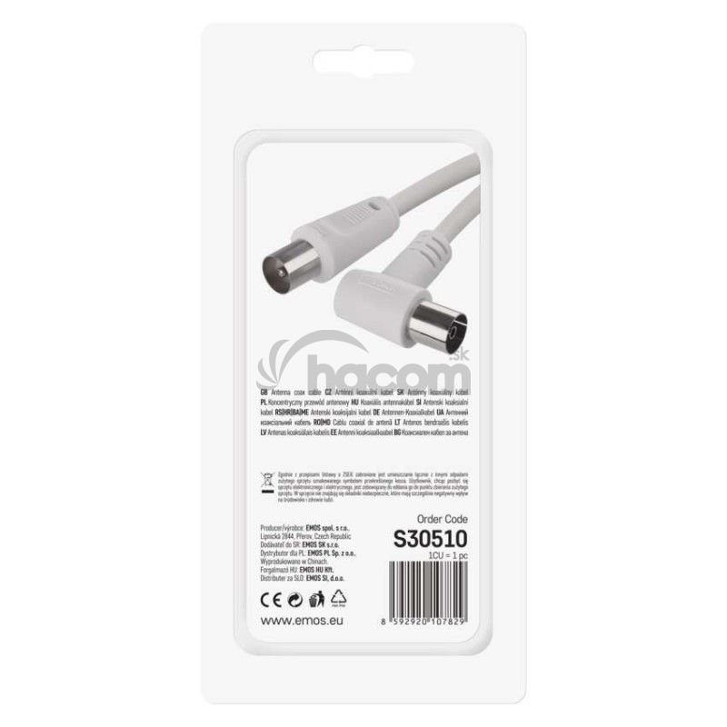 - Anténny koaxiálny kábel tienený 5m – uhlová vidlica S30510