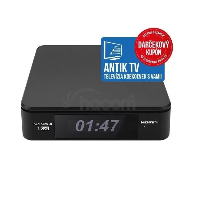 Antik Nano 4 umožňuje sledovať digitálnu televíziu s bohatou ponukou TV kanálov prostredníctvom internetového pripojenia. Okrem televízie ponúka smart funkcie ako TV archív, nahrávanie, EPG, USB Media player, či mediálne aplikácie ako TA3, Mall TV, iKostol.sk, Kukaj.sk a mnohé ďalšie. Pre pripojenie Antik Nano 4 postačuje iba internet s priemernou stabilnou rýchlosťou 6 mbps od ktoréhokoľvek providera a sledujete televíziu tak, ako ste boli doteraz zvyknutí, napríklad pri satelitnom alebo káblovom príjme.