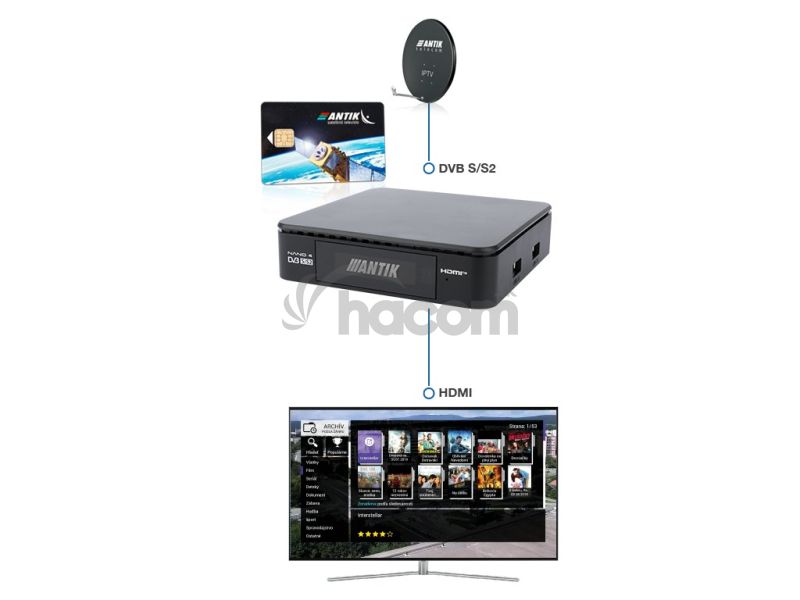 Antik Nano 4S umožňuje sledovať ako satelitnú. Tak aj digitálnu televíziu zároveň s bohatou ponukou TV kanálov prostredníctvom satelitného (DVB-S2) a internetového LAN/WIFI pripojenia. Okrem televízie ponúka smart funkcie ako TV archív, nahrávanie, EPG, USB Media player, či mediálne aplikácie ako TA3, Mall TV, iKostol.sk, Kukaj.sk a mnohé ďalšie. Pre sledovanie internetovej TV postačuje iba internet s priemernou stabilnou rýchlosťou 6 mbps od ktoréhokoľvek providera a sledujete televíziu tak, ako ste zvyknutí, napríklad pri satelitnom alebo káblovom príjme.