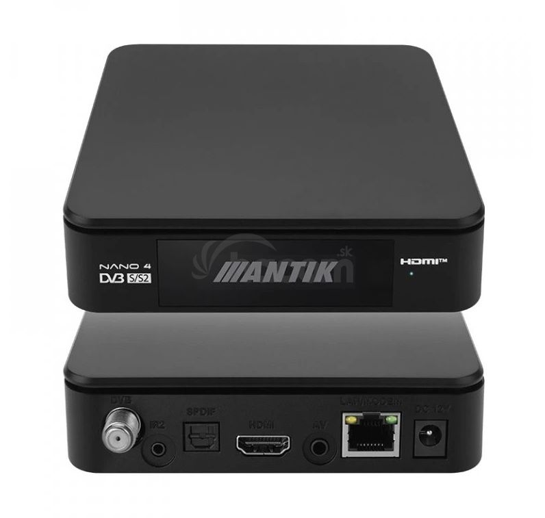 Antik Nano 4S umožňuje sledovať satelitnú a aj digitálnu televíziu zároveň s bohatou ponukou TV kanálov prostredníctvom satelitného (DVB-S2) a internetového LAN/WIFI pripojenia. Okrem televízie ponúka smart funkcie ako TV archív, nahrávanie, EPG, USB Media player, či mediálne aplikácie ako TA3, Mall TV, iKostol.sk, Kukaj.sk a mnohé ďalšie. Pre sledovanie internetovej TV postačuje iba internet s priemernou stabilnou rýchlosťou 6 mbps od ktoréhokoľvek providera a sledujete televíziu tak, ako ste zvyknutí, napríklad pri satelitnom alebo káblovom príjme.