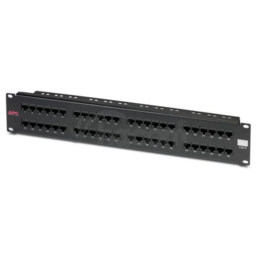 APC CAT 6 prepojovací (Patch) panel, 48 portov RJ45 na 110 568 A/B farebné značenie.Sieťová infraštruktúra a infraštruktúra konektivity pre dátové strediská: Konektory RJ45; prepojovacie panely; medené sieťové káble a prepojovacie káble; zakončené káble z optických vlákien.