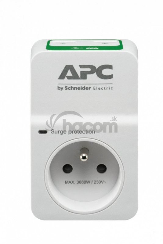 popisAPC Základná ochrana proti prepätiu SurgeArrest 1 výstup 230, 2 nabíjacie porty USB, Francúzsko