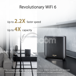 Systém ZenWiFi AX se skládá z páru routerů ASUS AX6600 WiFi 6 s jedinečnými technologiemi, které vám poskytnou super rychlá, spolehlivá a zabezpečená připojení WiFi – uvnitř nebo vně vaši domácnosti.ZenWiFi AX umožní vaší WiFi tu nejvyšší rychlost! S celkovou kapacitou až 6600 Mb/s je až 2,2krát rychlejší než trojpásmový router AC3000 (WiFi 5).
