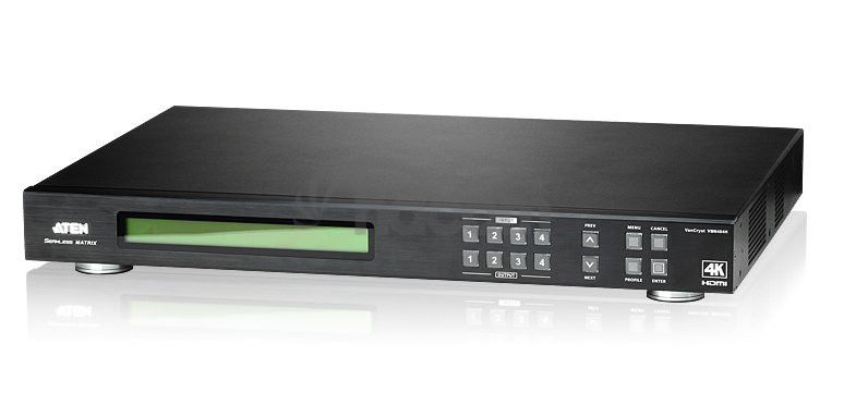 ATEN 4x4 port HDMI matrix prepínač a scaler, 4K, HDMI 2.0Umožní pripojiť 4 HDMI zdroje k 4 HDMI zobrazovačom v akejkoľvek kombinácii vstupov/výstupov v rozlíšení až 4K. Vstavaný scaler pre zvýšenie rozlíšenia obrazu a jeho kvality a prispôsobenie obrazu pre natívne rozlíšenie zobrazovacej jednotky.