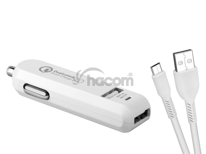 - AVACOM Carmax 2 nabíjačka do auta 2x Qualcomm Quick Charge 2.0, biela farba (micro USB kábel) NACL-QC2XM-WW