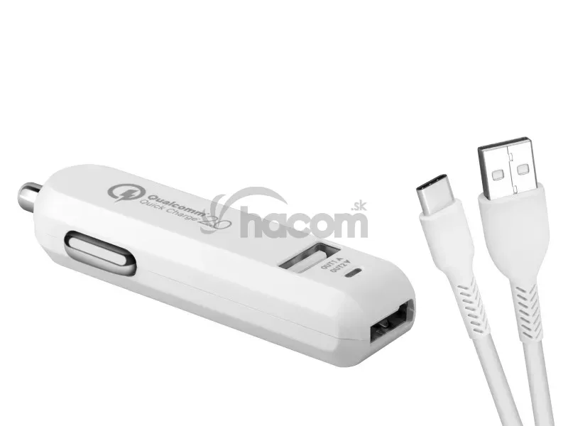 - AVACOM Carmax 2 nabíjačka do auta 2x Qualcomm Quick Charge 2.0, biela farba (USB-C kábel) NACL-QC2XC-WW