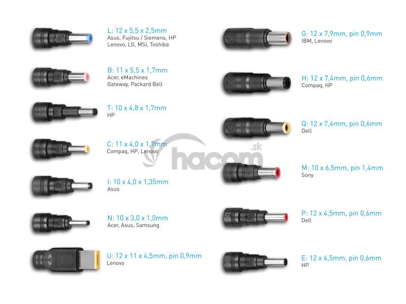 Plnohodnotne nahrádza adaptéry s výkonom 20 – 65W a výstupným napätím 18,5 – 20,5V.