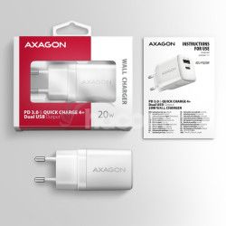- AXAGON ACU-PQ20W nabíjačka do siete 20W, 2x port (USB-A + USB-C), PD3.0/PPS/QC4+/AFC/Apple, biela ACU-PQ20W
