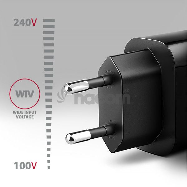 Telo napájacieho adaptéra má príjemný tvar a kompaktnú veľkosť . Kombinácia malých rozmerov a širokého rozsahu vstupného napätia robí z tejto nabíjačky ideálneho pomocníka na cesty.