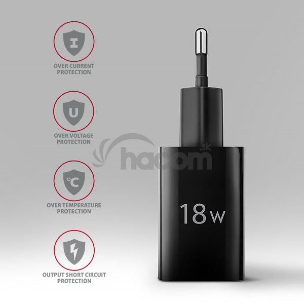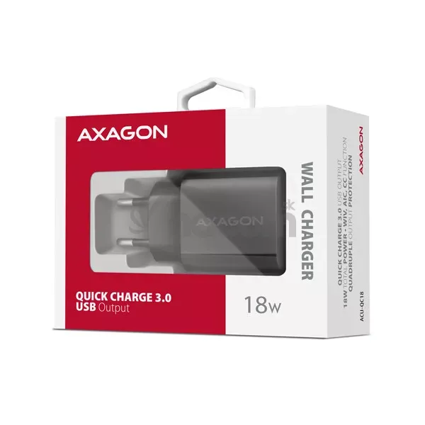 - AXAGON ACU-QC18, nabíjačka do siete 18W, 1x port USB-A, QC3.0/AFC/Apple, čierna ACU-QC18