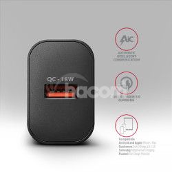 AXAGON ACU-QC18, nabíjačka do siete 18W, 1x port USB-A, QC3.0/AFC/Apple, čierna ACU-QC18