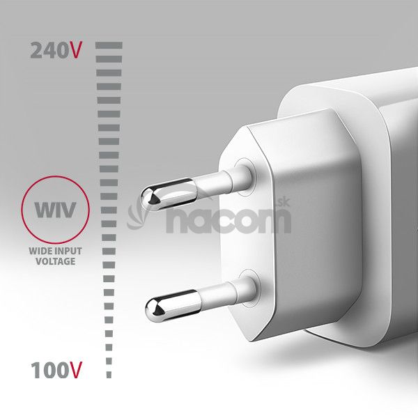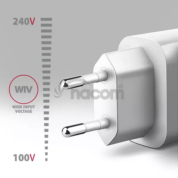 Telo napájacieho adaptéra má príjemný tvar a kompaktnú veľkosť . Kombinácia malých rozmerov a širokého rozsahu vstupného napätia robí z tejto nabíjačky ideálneho pomocníka na cesty.