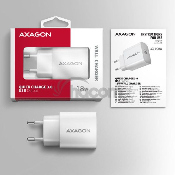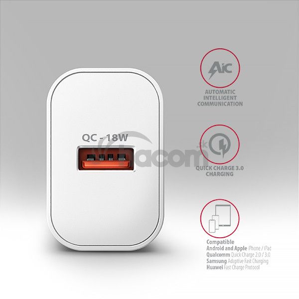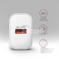 - AXAGON ACU-QC18W, nabíjačka do siete 18W, 1x port USB-A, QC3.0/AFC/Apple, biela ACU-QC18W